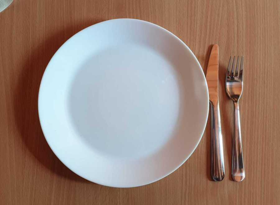 Teller, Messer, Gabel auf Wunsch auch Teelöffel und Esslöffel, sowie diverse weiße Schüsseln.